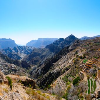 La tribu Bani Riyam perpétue les pratiques agricoles traditionnelles grâce aux systèmes d'irrigation falaj, permettant la culture en terrasses dans toute la chaîne montagneuse.