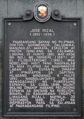 Jose Rizal historical marker, NHCP historical marker for José Rizal at the Rizal Monument in Calamba