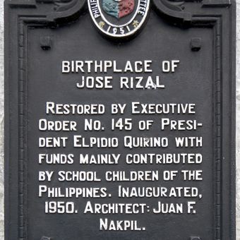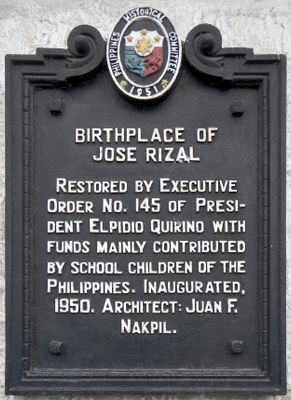 Birthplace of Jose Rizal historical marker, PHC historical marker for the birthplace of José Rizal