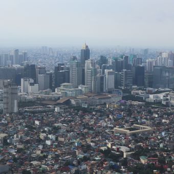 Bonifacio Global City est un quartier d'affaires situé à Fort Bonifacio, Taguig, qui associe des tours de bureaux en verre et acier, des complexes résidentiels et des galeries commerciales sur 240 hectares. De larges trottoirs traversent des blocs plantés d'arbres bas et de places ouvertes qui accueillent des bancs et quelques sculptures.