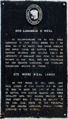 Site where Rizal Landed historical marker, NHC historical marker for the site where José Rizal landed in Dapitan
