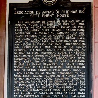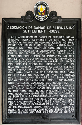 Asociacion de Damas de Filipinas, Inc. historical marker, NHI historical marker for the Asociacion de Damas de Filipinas