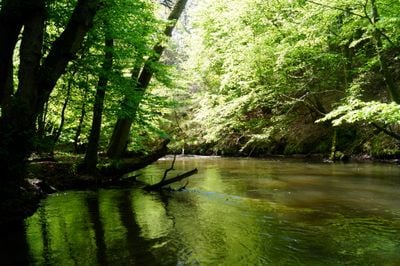 Le fleuve Drawa traverse le paysage en direction de la mer et crée des gorges profondes au sein du Parc national de Drawieński entourées de forêt dense. Ces gorges ont été creusées par l'eau qui s'est profondément gravée dans le terrain, donnant au parc son caractère distinctif.
