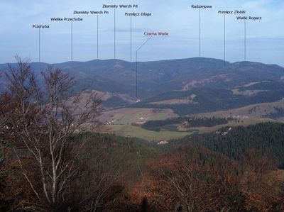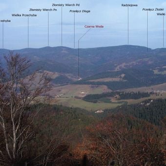 Le sommet du Złomisty Wierch atteint 1 224 mètres d'altitude et présente des pentes raides recouvertes de végétation caractéristique des Carpates.