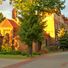 Le complexe monastique présente une architecture néogothique avec des murs de briques apparentes, entouré de jardins étendus derrière des murs en blocs plâtrés.