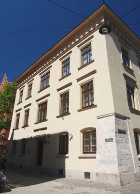 Collegium Minus est un bâtiment académique de l'Université Jagellonne avec des éléments gothiques et Renaissance, incluant des détails de pierre taillée et des fenêtres régulièrement espacées. A l'intérieur, plusieurs étages et des cours avec des galeries à colonnes ont soutenu l'enseignement pendant des siècles.