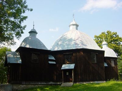 La structure représente l'une des églises orthodoxes orientales en bois préservées dans la région de Bieszczady, avec des méthodes de construction traditionnelles.
