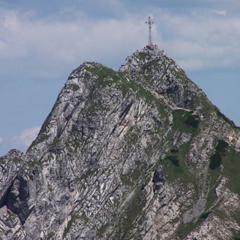 La croix de Giewont est un monument métallique de 15 mètres de haut qui se dresse au sommet du mont Giewont dans les Tatras près de Zakopane. La structure se compose de 400 éléments en fer avec une traverse horizontale qui se détache nettement sur le ciel.