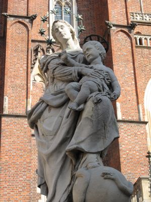 Statue of Madonna and Child, Wrocław Cathedral Square, Pools monument in Wrocław