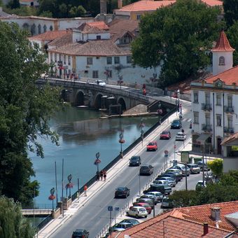 Tomar est une ville à Santarém qui s'étend sur des terres fertiles le long du fleuve Nabão avec une population d'environ 40 000 habitants. Au cœur se trouve le Convento de Cristo, un complexe monastique vaste avec des cours, des jardins et des cloîtres qui montrent des styles architecturaux différents depuis l'époque médiévale.