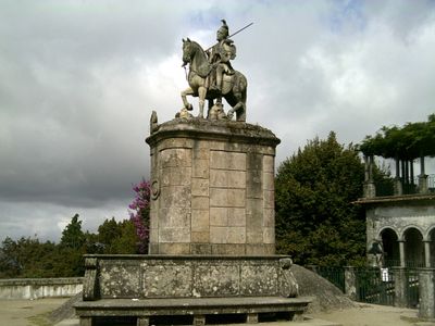 Saint Longinus statue in Bom Jesus, Statue équestre en granit à Bom Jesus do Monte, Portugal.