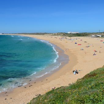 Praia da Consolação est une plage atlantique avec deux zones distinctes: une section rocheuse au sud et une vaste étendue de sable au nord vers Peniche. Les deux zones offrent des expériences différentes aux visiteurs recherchant soit une exploration rocheuse, soit de grands espaces sablonneux.