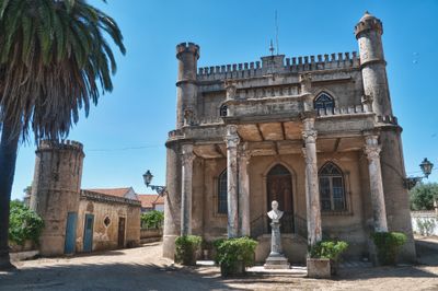 Le Palácio do Conde da Azarujinha est un manoir néoclassique à deux étages, où le rez-de-chaussée et le niveau supérieur sont clairement visibles. Le domaine comprend une église, un kiosque à musique et une fontaine qui font partie de la composition générale.