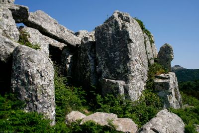 La structure mégalithique témoigne des premières capacités architecturales humaines, associant formations granitiques naturelles et arrangements de pierres orientés vers le coucher du soleil.