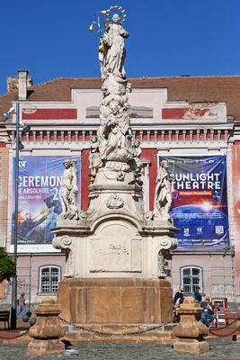 Virgin Mary & St John of Nepomuk Monument in Timișoara, Monument religieux baroque sur la Place Libertății, Timișoara, Roumanie.