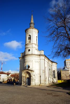 L'église en pierre présente une haute tour cylindrique servant de clocher et des murs extérieurs crépis sans éléments décoratifs sur le Boulevard Stefan cel Mare.