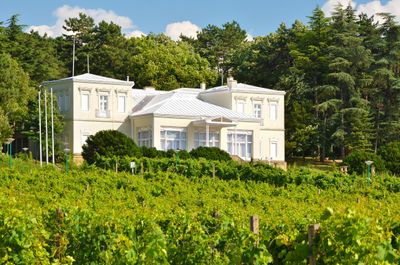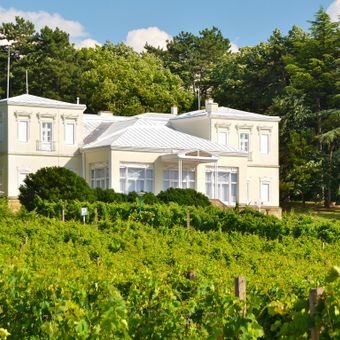 La villa néoclassique se dresse sur les pentes nord de la colline Plavinac, offrant des vues sur le Danube et les vignobles qui s'étendent sur le domaine.