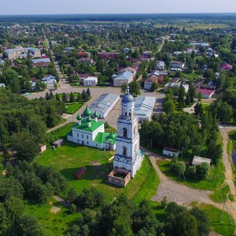 Le centre-ville contient des maisons de marchands, des rangées commerciales des années 1830 et une gare routière avec des liaisons régulières vers Yaroslavl.