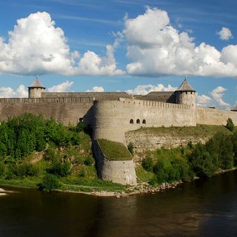 La forteresse d'Ivangorod se dresse sur la rive est de la rivière Narva, à la frontière russo-estonienne, et est une grande structure en pierre avec des murs épais. Le site abrite aujourd'hui un musée contenant des objets de l'histoire régionale et plusieurs bâtiments montrant différentes périodes de construction.