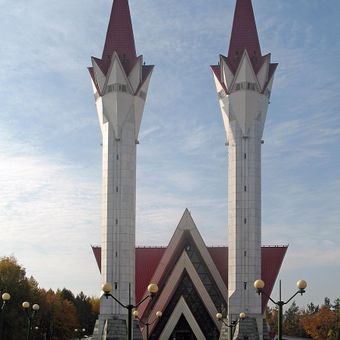 La Lala Tulpan est une mosquée à Oufa avec huit minarets, des murs blancs et des dômes bleus évoquant des boutons de tulipes s'ouvrant. La structure combine les traditions architecturales islamiques avec des éléments de design régionaux.