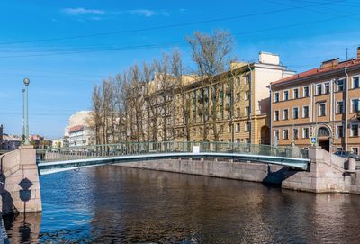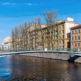 Le pont de Kolomensky traverse la rivière Fontanka avec des garde-corps en fer et des décorations ornementales reflétant les normes d'ingénierie du XIXe siècle.