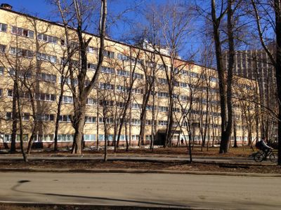 Le campus Vsekhsvyatsky est un complexe de logements pour etudiants dans le nord de Moscou comprenant plusieurs batiments de style constructiviste. Les facades conservent les cadres de fenetres d'origine et affichent les formes geometriques typiques de cette approche architecturale.