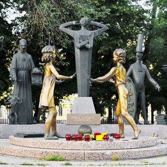 Les enfants sont les victimes des vices des adultes, Ensemble sculptural sur la place Bolotnaïa, Moscou, Russie