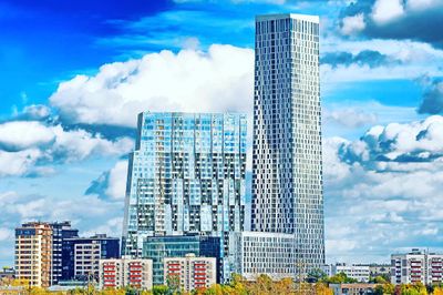 La House on Mosfilmovskaya comprend deux tours de 213 mètres et 131 mètres de hauteur, reliées par une structure de huit étages sur une base de trois niveaux.