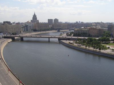 Le pont Novoarbatsky s'étend sur 494 mètres au-dessus de la Moskova, reliant l'avenue Novy Arbat aux grandes artères des deux rives.