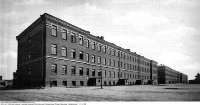 Construites en 1898 sous la direction de l'architecte S.U. Solovyov, les casernes accueillaient initialement la Première Brigade d'Artillerie des Grenadiers et le Premier Régiment des Cosaques du Don.