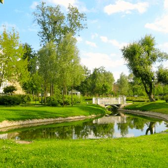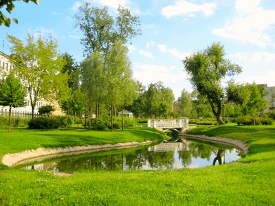Le Jardin Polsky s'étend sur 2,3 hectares le long du quai de la Fontanka, avec des sentiers sinueux traversant des terrains paysagers près de la Cathédrale catholique.