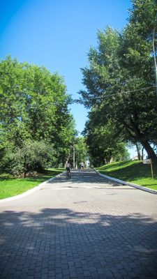 La rue Zhuzha s'étend sur 550 mètres à travers le parc Kolomenskoye, reliant les zones résidentielles aux installations locales et aux espaces récréatifs.