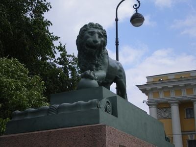Ces statues en bronze se distinguent des autres sculptures de lions à Saint-Pétersbourg par leur placement direct le long du fleuve, créant des reflets dans la Neva.