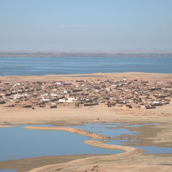 Wadi Halfa est une ville sur la rive orientale du lac Nubia, qui forme la frontière entre le Soudan et l'Égypte. Elle a été reconstruite après l'inondation de l'établissement d'origine dans les années 1960, et fonctionne aujourd'hui grâce à sa position sur ce grand réservoir où les ferries et les bateaux se connectent à l'Égypte.