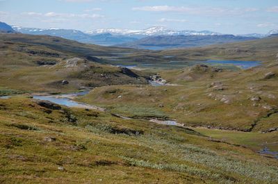 La zone protégée comprend de vastes plateaux, de grands lacs et des montagnes arrondies sur fond de sommets enneigés à la frontière norvégienne.