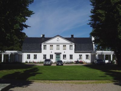 Blombacka herrgård est un manoir situé sur un domaine avec des terres agricoles et des zones boisées dans la commune de Skara. La propriété présente des bâtiments résidentiels d'architecture suédoise traditionnelle avec des constructions annexes caractéristiques des domaines.