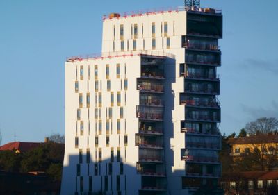 Les trois derniers étages abritent des résidences exclusives avec des balcons multidirectionnels, incluant des appartements jusqu'à 178 mètres carrés avec vue panoramique sur Stockholm.