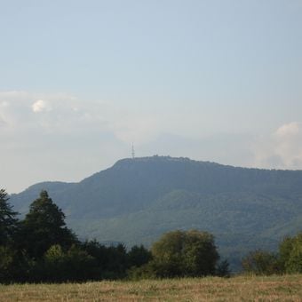 Le sommet du Sitno atteint une altitude de 1009 mètres et présente des pentes abruptes couvertes de forêts denses dans la chaîne des monts Štiavnica.