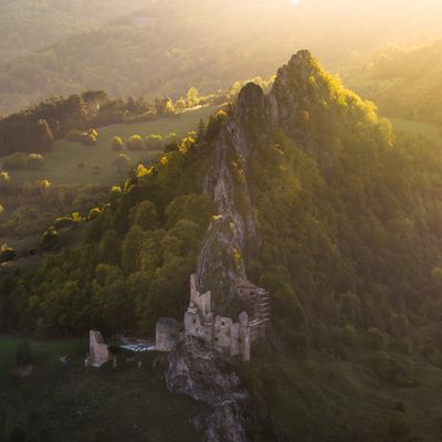 Lednica Castle, Ruines de château gothique dans le district de Púchov, Slovaquie.