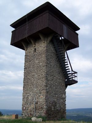 Vous montez à la tour par un escalier extérieur moderne qui mène à la plateforme d'observation en haut. De là, vous pouvez voir la vallée de la rivière Krupinica et le paysage environnant.