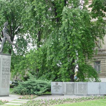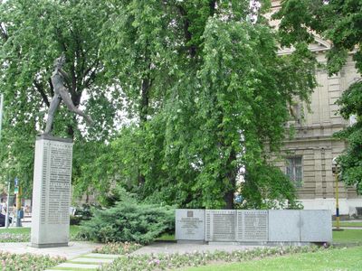 Pom. maratónu mieru, maratónec, monument in Old Town, Košice, Slovakia