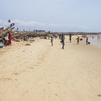 Kayar est une ville côtière de l'Atlantique dans le département de Thiès, au Sénégal, connue comme l'un des principaux points de débarquement de la pêche artisanale du pays. La plage est large et bordée de centaines de pirogues en bois aux couleurs vives qui sortent et rentrent chaque jour.