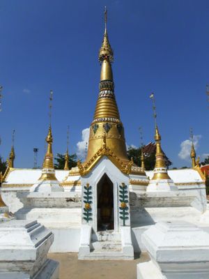 Le chedi affiche une fusion architecturale inhabituelle combinant des éléments de deux traditions de construction distinctes dans sa structure en couches. Ce mélange rare de conception birmane et thaï en fait un exemple remarquable d'architecture d'une période historique de transition.