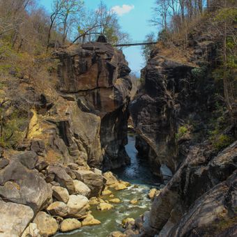 La rivière Mae Chaem a sculpté le canyon Op Luang, créant des parois abruptes qui s'étendent sur 300 mètres à travers les formations calcaires.