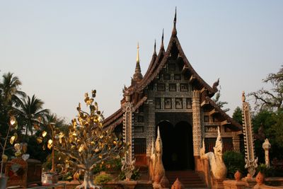 Contrairement aux temples bouddhistes traditionnels orientés vers l'est, ce temple suit un axe nord-sud avec un viharn en bois de teck laqué noir.
