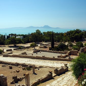 Carthage était une cité méditerranéenne antique sur la côte de l'actuelle Tunisie, dont les vestiges s'étendent sur un promontoire dominant le golfe de Tunis. Les zones archéologiques comprennent deux bassins portuaires artificiels, les restes de plusieurs complexes de temples, des quartiers résidentiels et une vaste nécropole sur la colline.