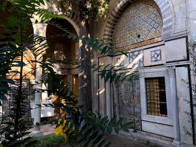Dar Othman est un palais ottoman dans la Médina de Tunis offrant des pièces avec des motifs de carrelage détaillés, des plafonds en bois sculptés et plusieurs cours intérieures. Le bâtiment combine les influences architecturales ottomanes, andalouses et tunisiennes dans son design et ses ornements.