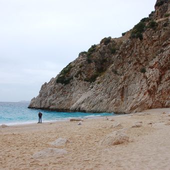 La plage sert d'escale régulière aux bateaux traditionnels de la Croisière Bleue turque, reliant les visiteurs aux traditions maritimes locales.