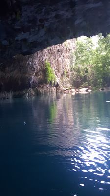 L'entrée de la grotte mesure 40 mètres de large et de haut, menant à un premier lac de 125 mètres avec des profondeurs de 15 mètres.