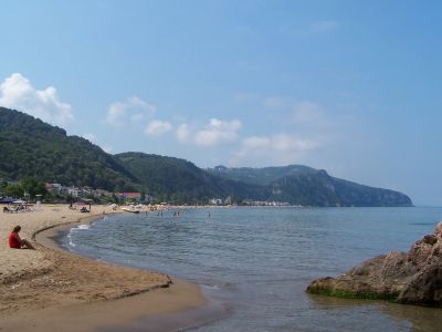La plage d'İnkumu s'étend sur trois kilomètres le long de la mer Noire, offrant du sable fin bordé par des collines boisées denses.